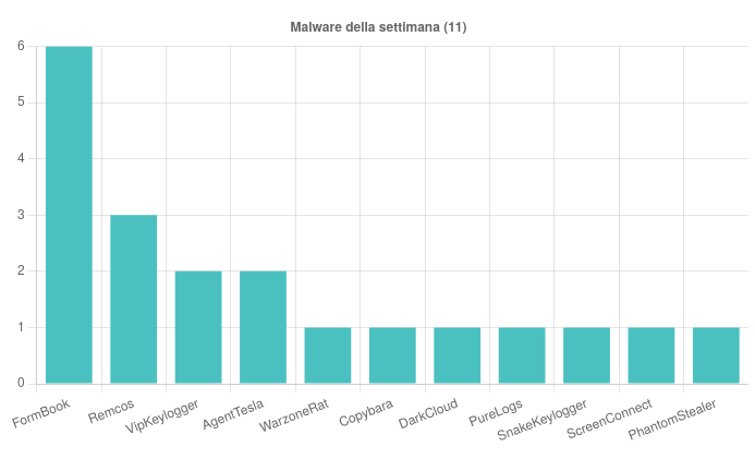 Nel corso della settimana sono state osservate undici famiglie di malware attive sul panorama italiano.