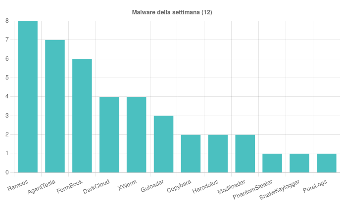 Nel periodo analizzato sono state individuate 12 famiglie di malware.