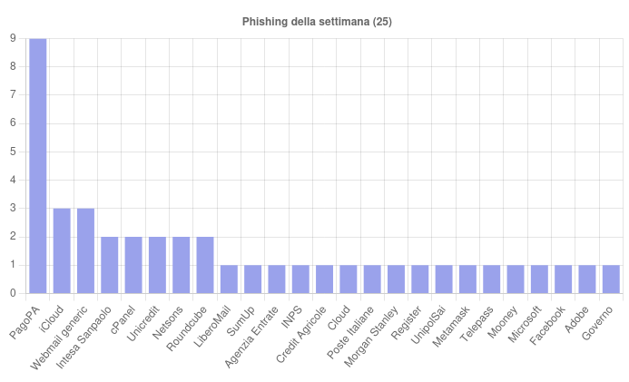 Sono 25 i brand coinvolti nelle campagne di phishing rilevate nel periodo.